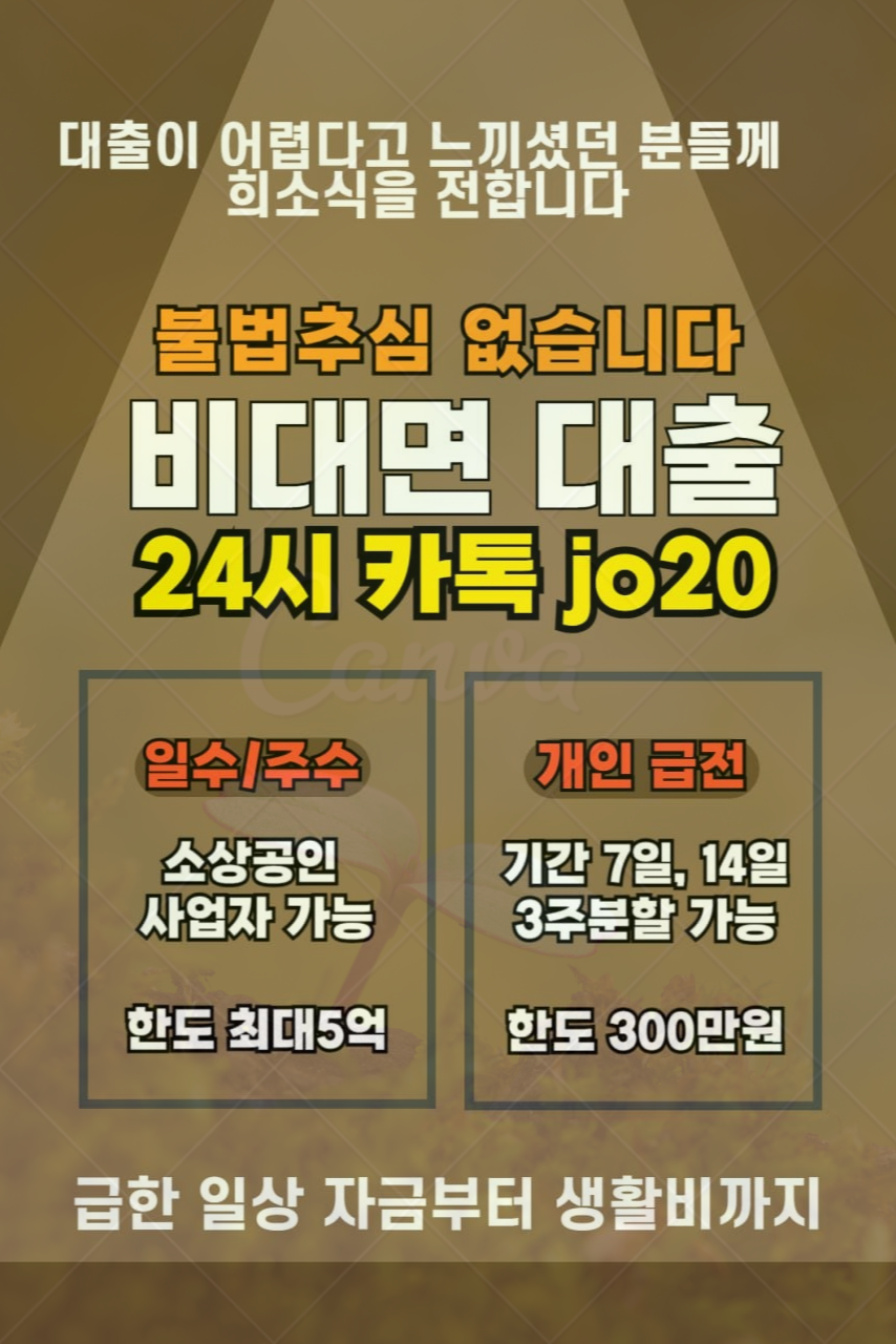 최대한도 가능/ 급전 1~3주 대출 가능 직업 무관, 소득 증빙 없이도 신청 가능 개인돈 급전 일수/주수 대출 카톡 : jo20