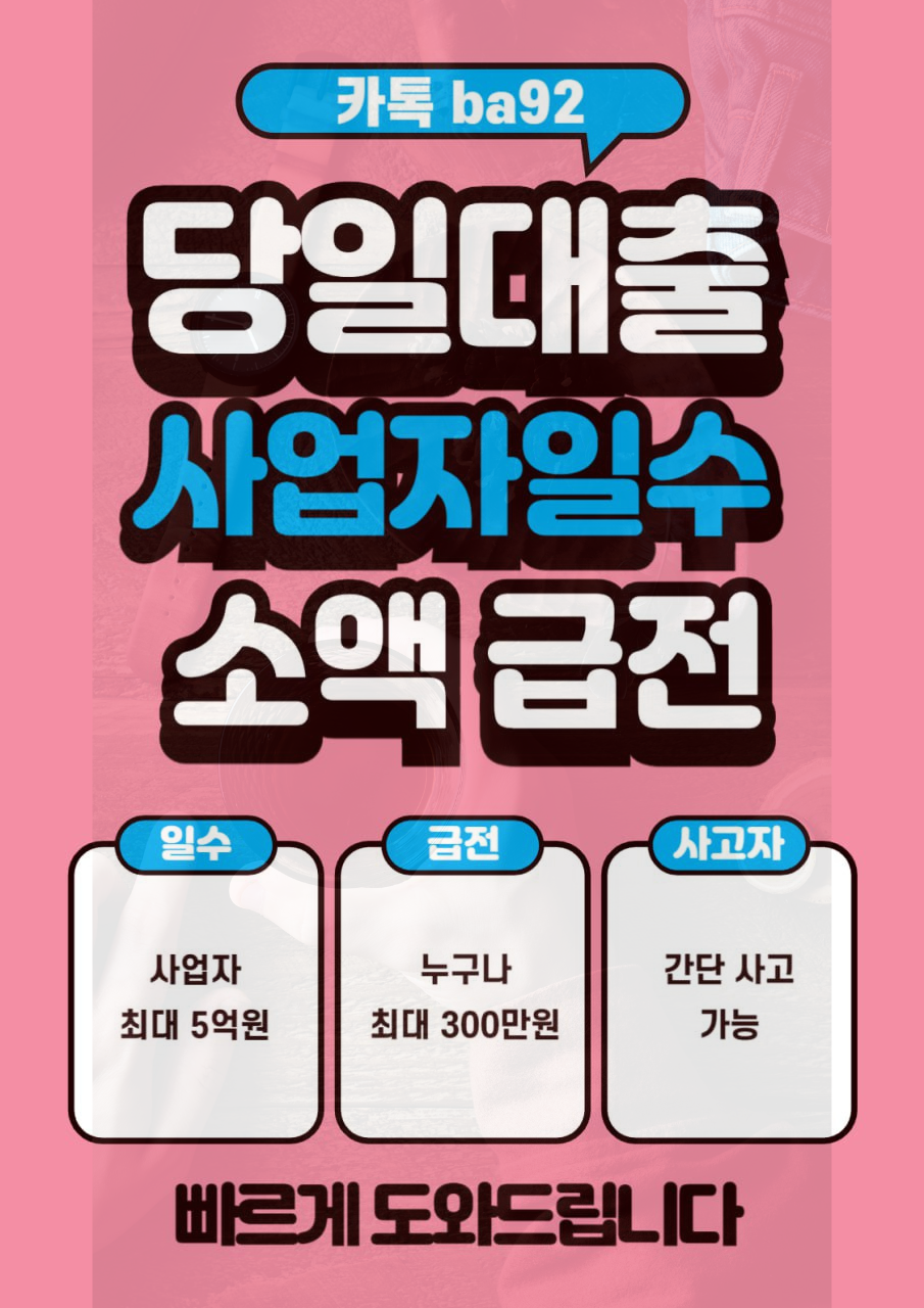 당일 상담 · 당일 진행 가능한 개인돈 급전 일수 주수 대출 최대한도 가능, 빠른 승인 카카오톡 : ba92 – 친절상담